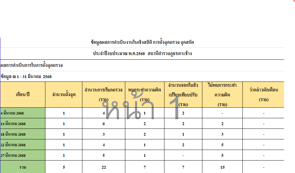 การตั้งจุดตรวจเดือน มีนาคม 2678