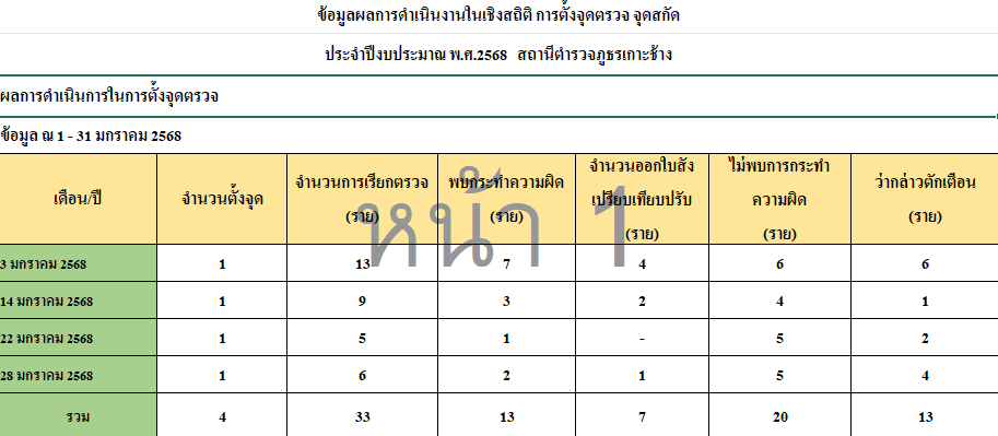 การตั้งจุดตรวจเดือน มกราคม 2568