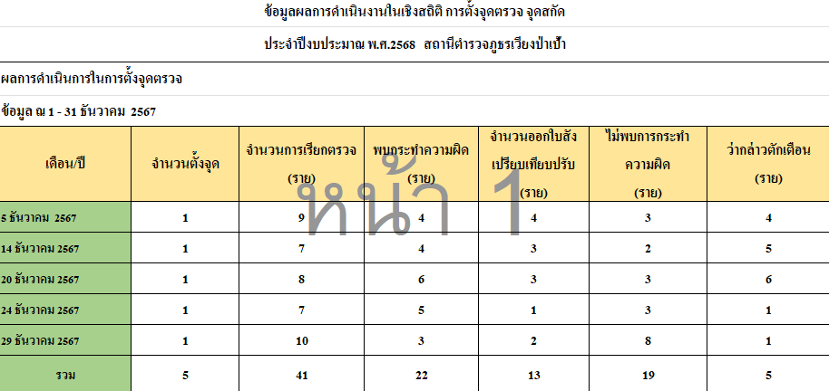 การตั้งจุดตรวจเดือน ธันวาคม 2567
