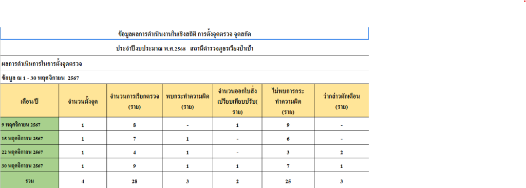 การตั้งจุดตรวจเดือน พฤศจิกายน 2567