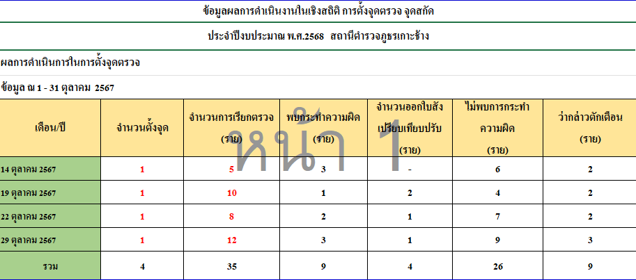 การตั้งจุดตรวจเดือน ตุลาคม 2567