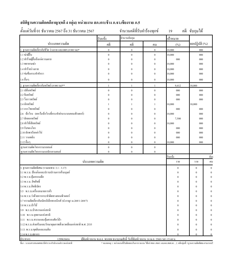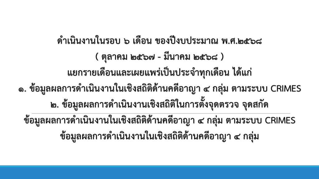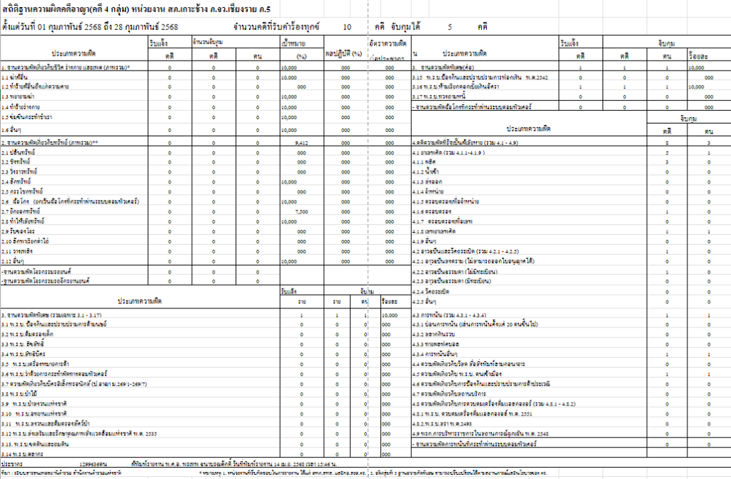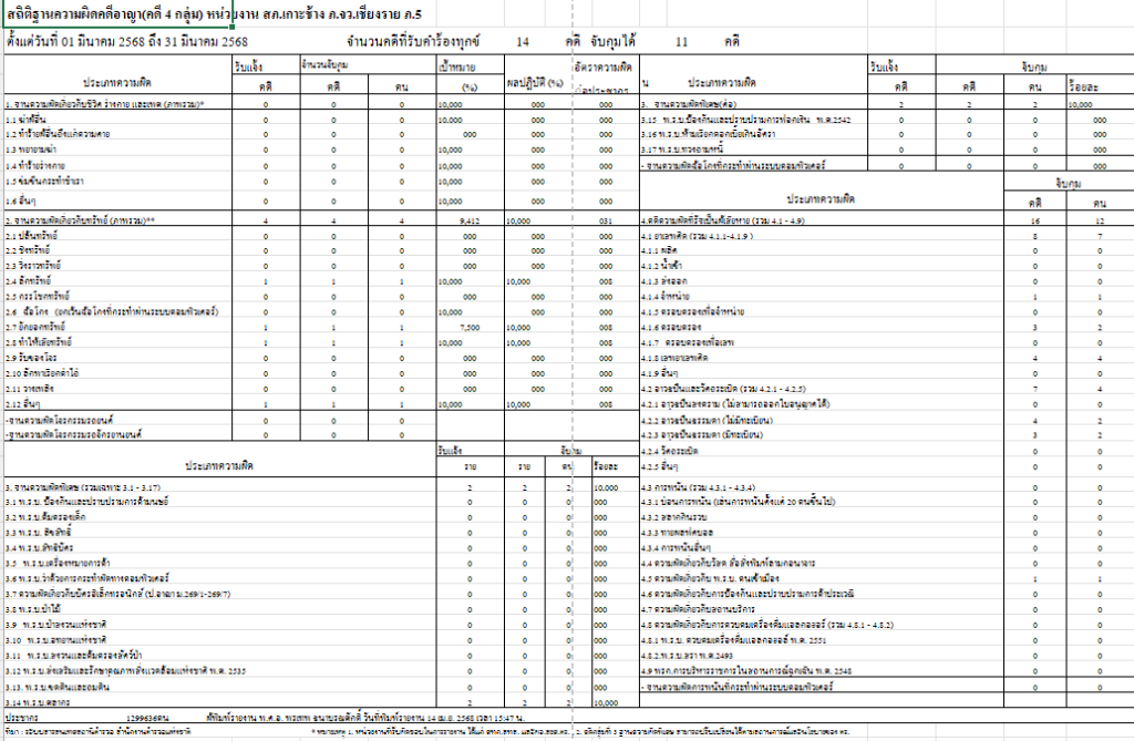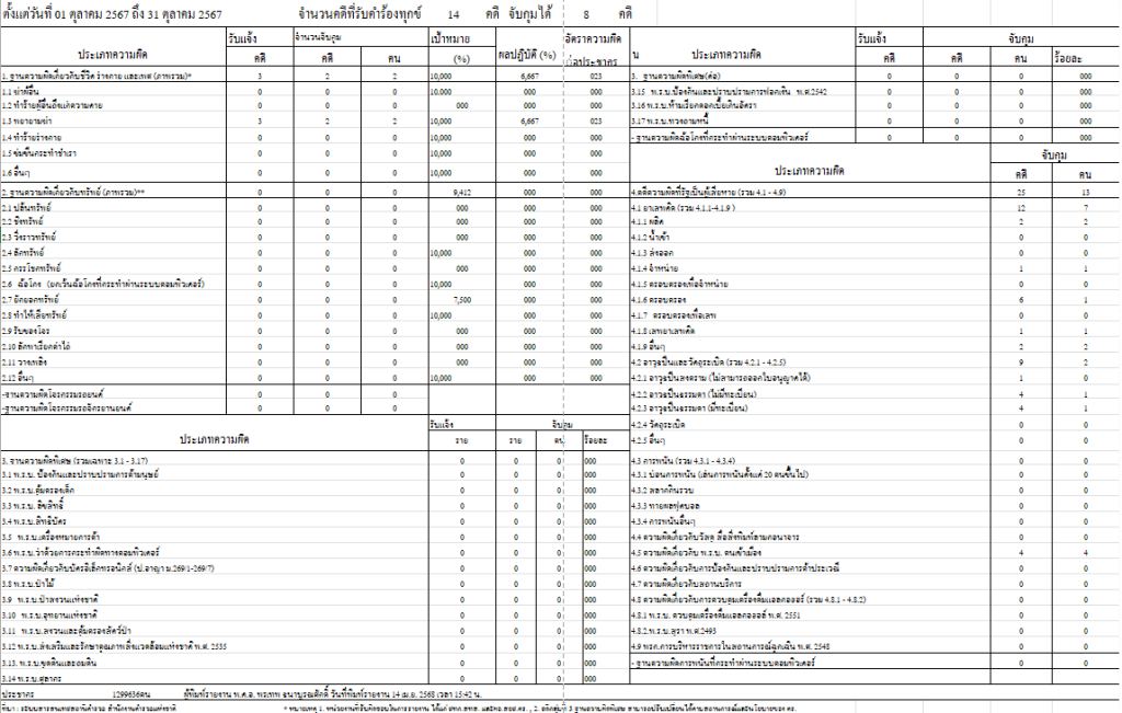 ข้อมูลผลการดำเนินงานในเชิงสถิติด้านคดีอาญา 4 กลุ่ม เดือน ต.ค.67 - มี.ค.68