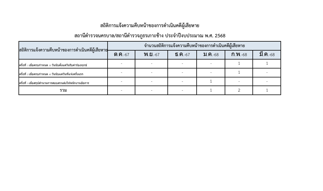 สถิติการแจ้งความคืบหน้าของการดำเนินคดีผู้เสียหาย