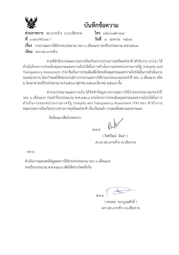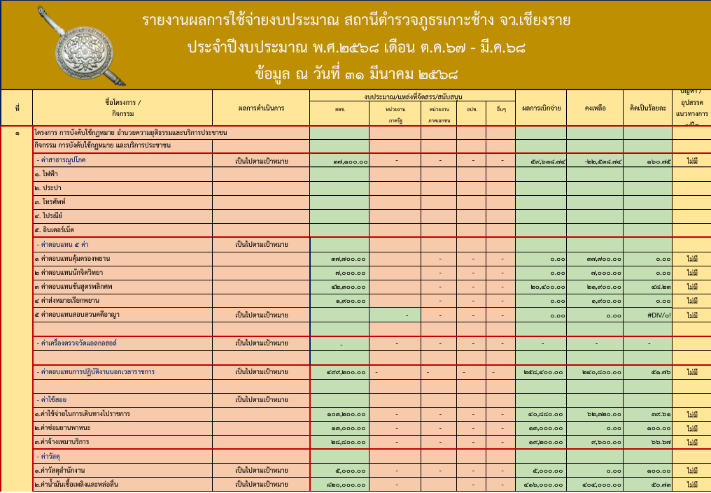รายงานผลการใช้จ่ายงบประมาณ ประจำปีงบประมาณ 2567