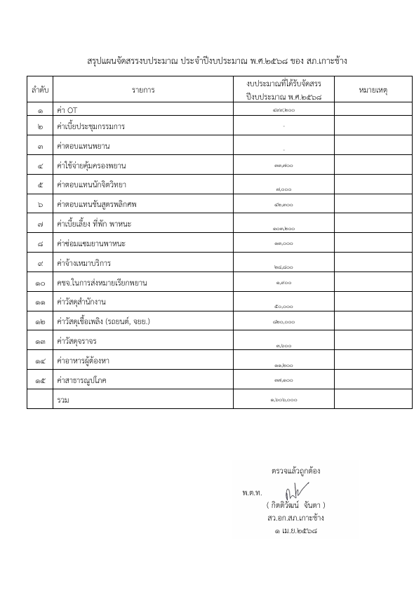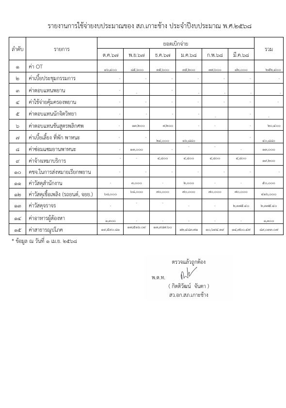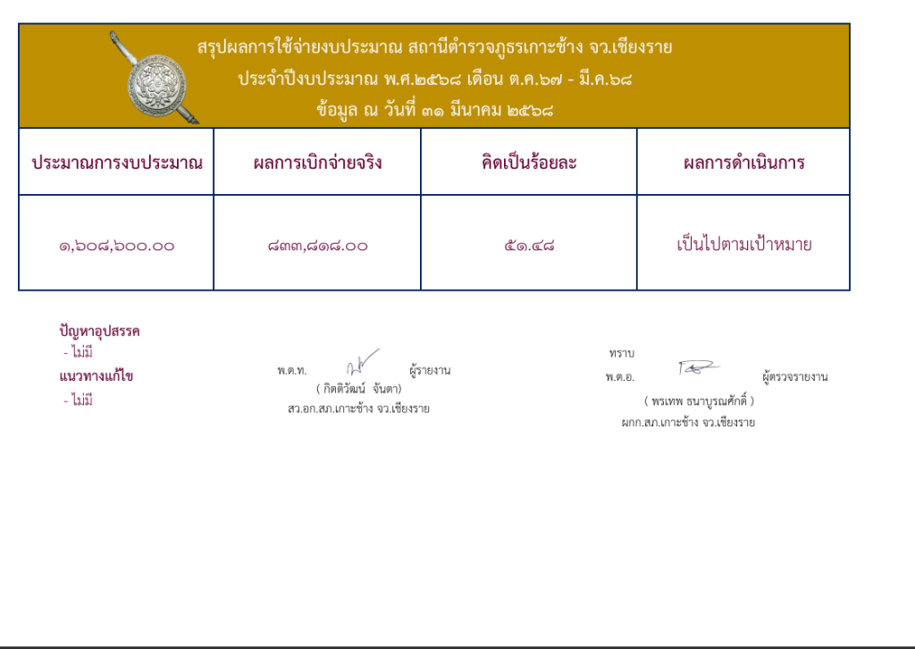 สรุปผลการใช้จ่ายงบประมาณ ประจำปีงบประมาณ 2567