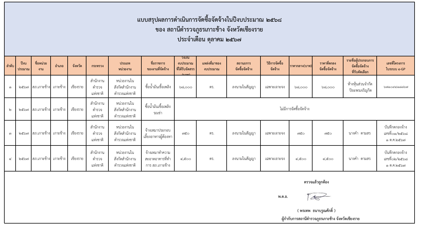 สรุปผลการจัดซื้อจัดจ้าง ประจำเดือน ตุลาคม พ.ศ.2567