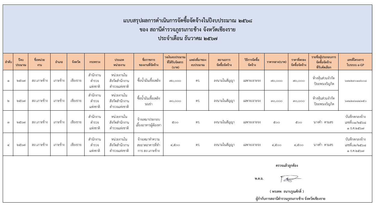 สรุปผลการจัดซื้อจัดจ้าง ประจำเดือน ธันวาคม พ.ศ.2567