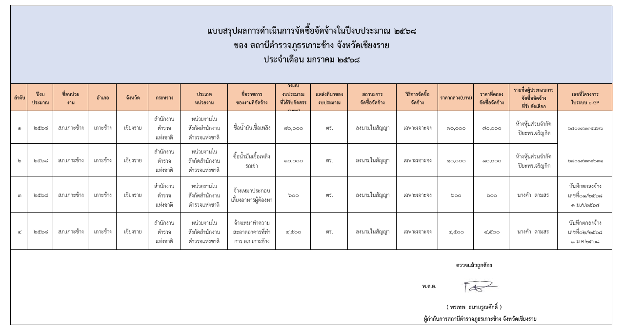 สรุปผลการจัดซื้อจัดจ้าง ประจำเดือน มกราคม พ.ศ.2568