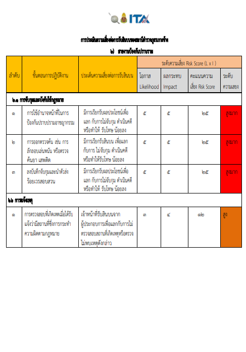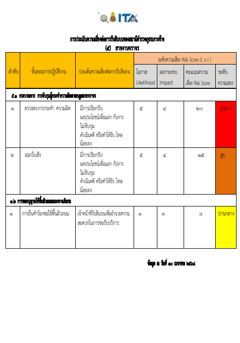 020 การประเมิณความเสี่ยงต่อการรับสินบน