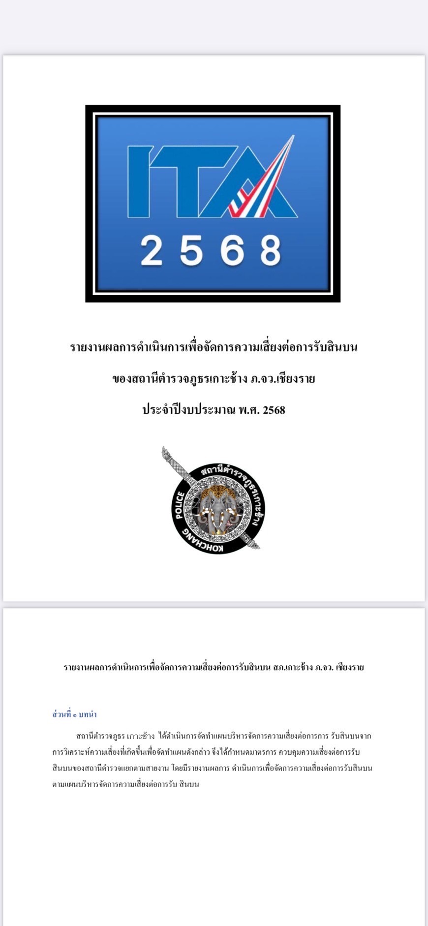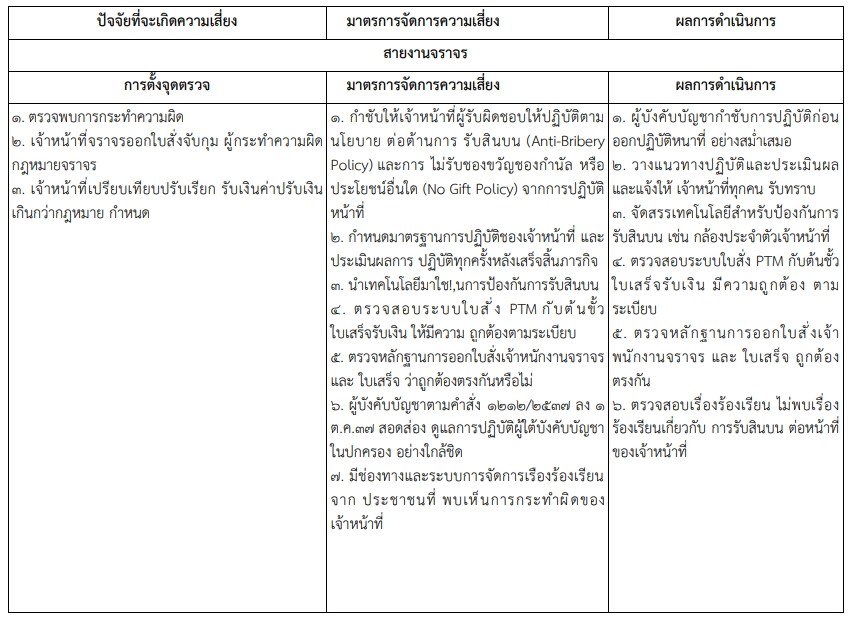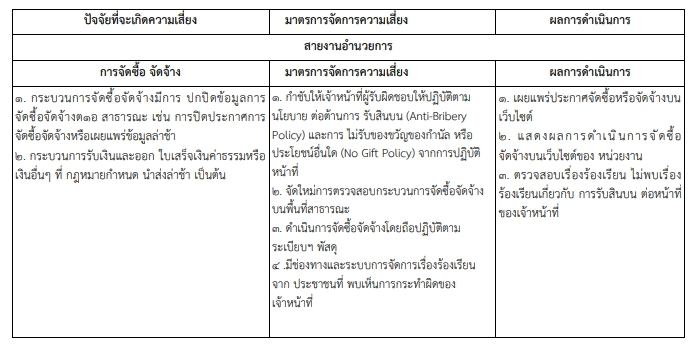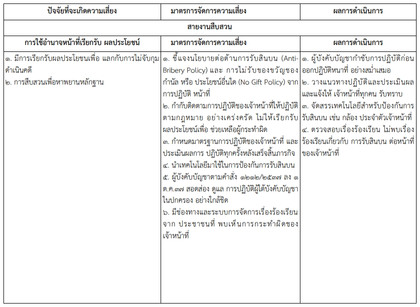 รายงานผลการดำเนินการประเมินความเสี่ยงต่อการรับสินบน