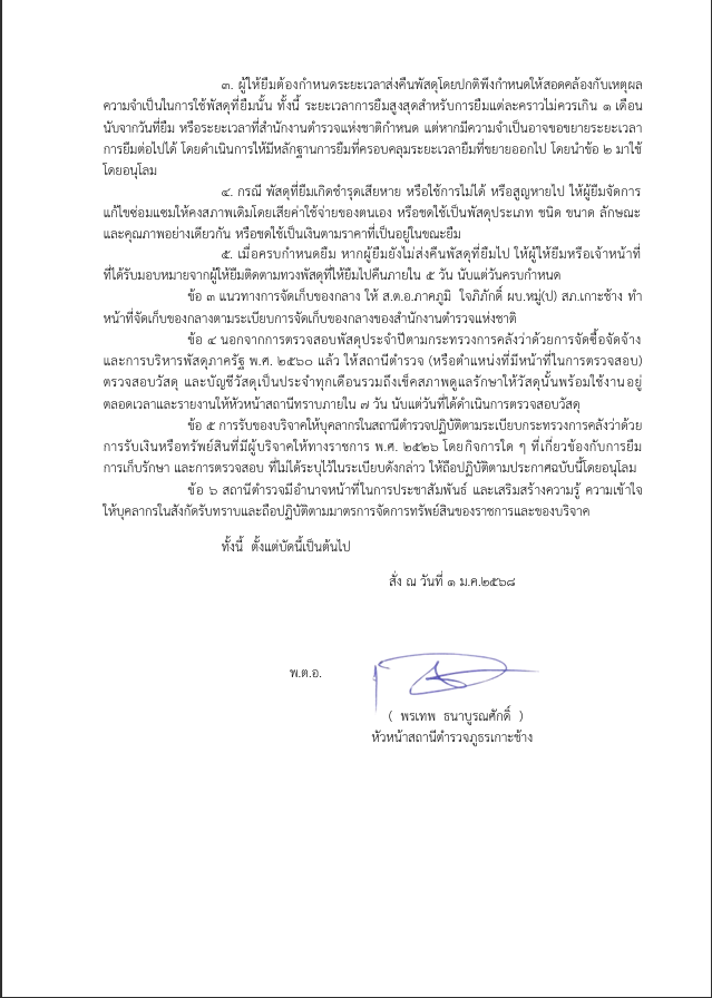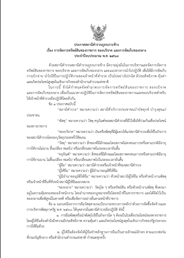 ประกาศการจัดการทรัพย์สิน สถานีตำรวจภูธรเกาะช้าง